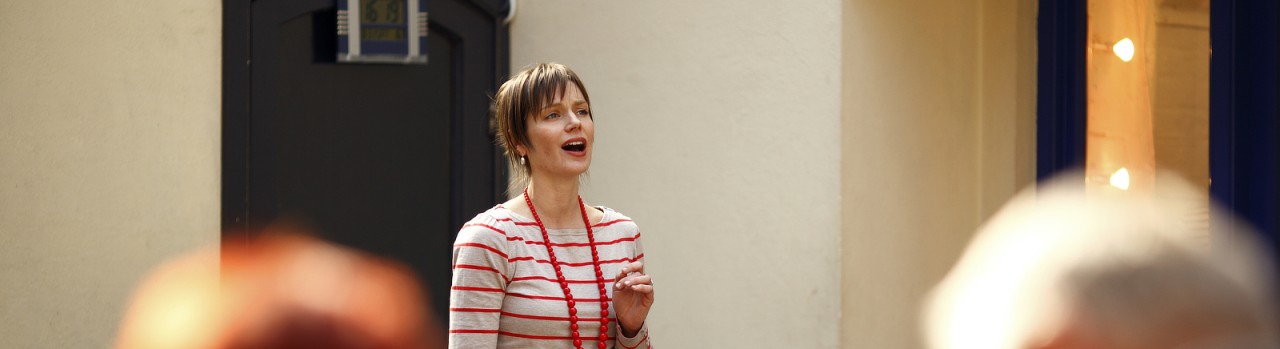 Dann geht es in die intensive Einzelarbeit: Hier kann jeder das Gefühls- und Ausdruckspotential seines Gesangsstückes voll ausschöpfen. Dabei werden auch die Teilnehmer eingebunden, die gerade nicht an der Reihe sind. Wir bauen Szenen, spielen mit den Liedern und kommen so zum Kern dessen, was wir individuell mit dem Stück verbinden und ausdrücken wollen. Ob innige Kirchenarie oder durchchoreographierter Song mit Backgroundsängern, ob Jazzstandard, große Oper oder Chanson – am Ende dieses Kurses steht für jeden Einzelnen eine stimmig zu Ende gearbeitete, inszenierte Interpretation, ein ausdrucksstarker Auftritt.